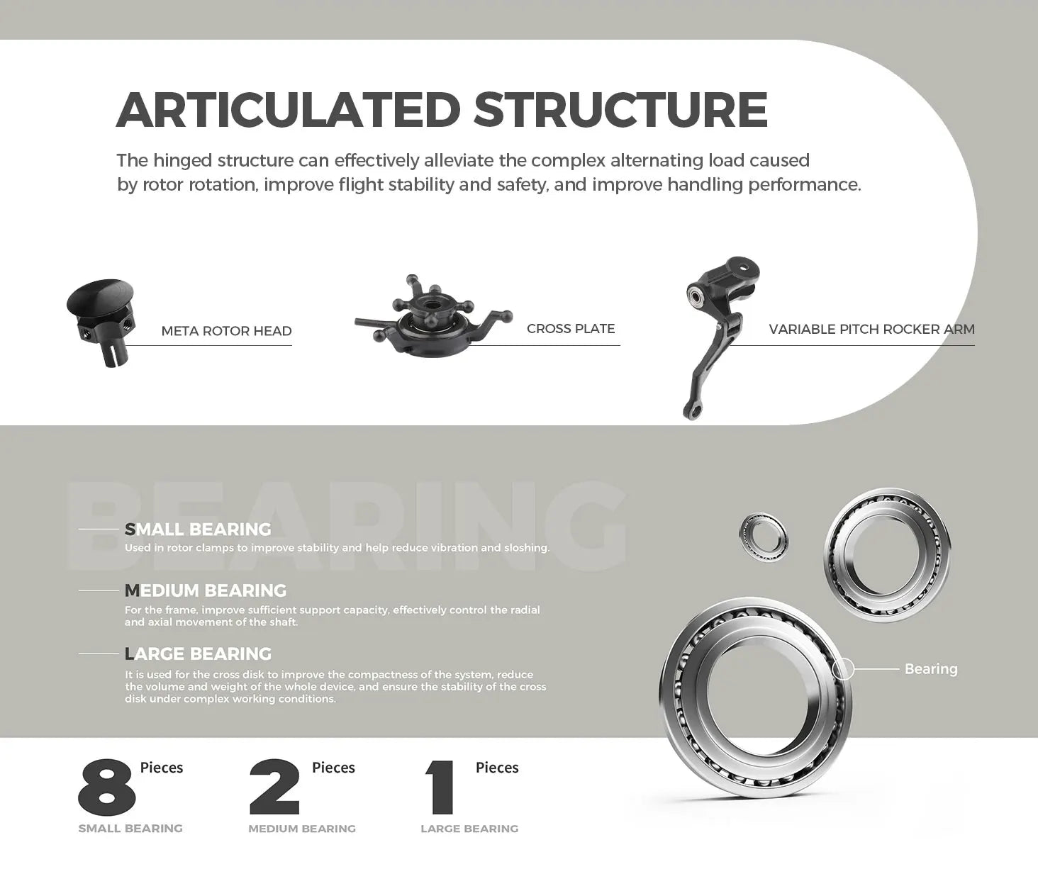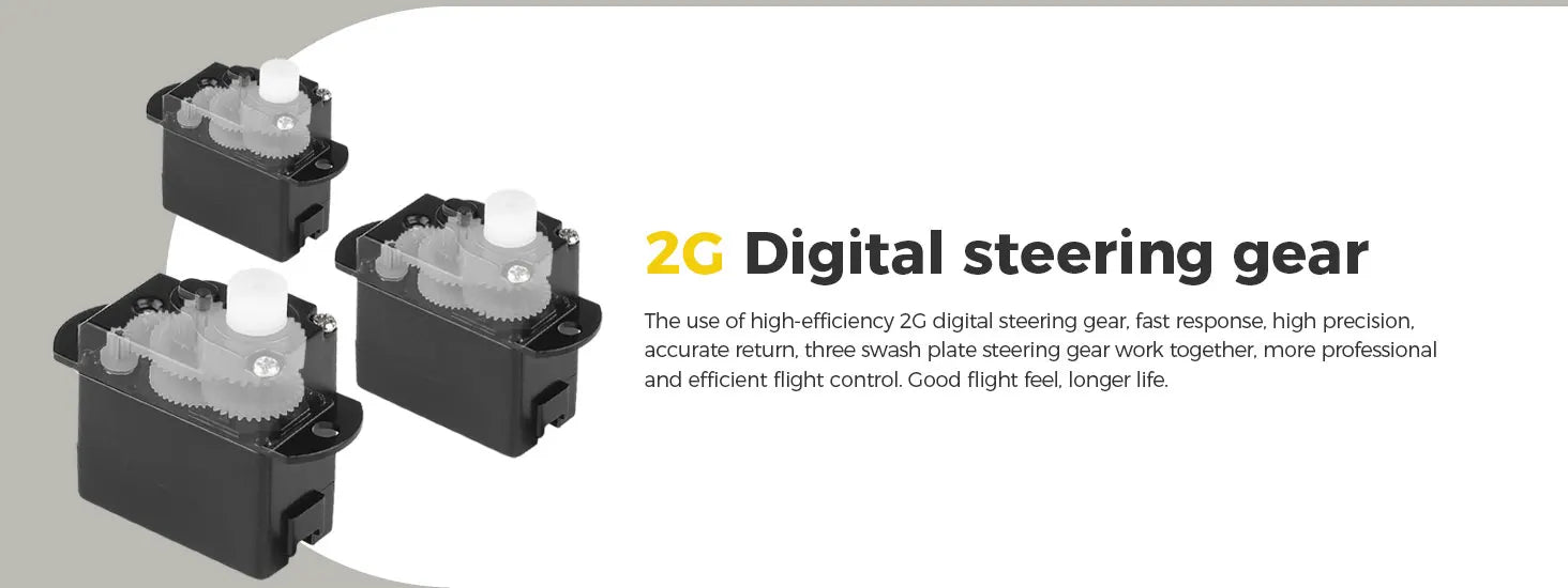Custom-designed control stick base with fine-tuned centering. Paired with digital 2G servos for fast response and smooth maneuvering.